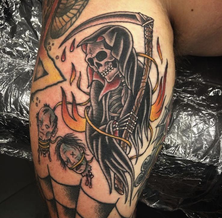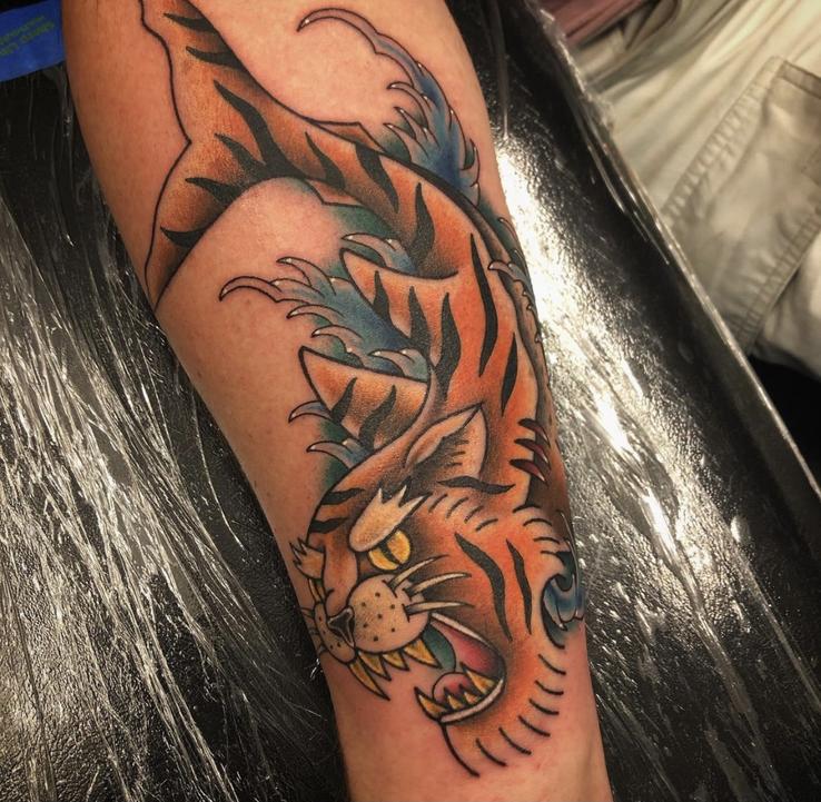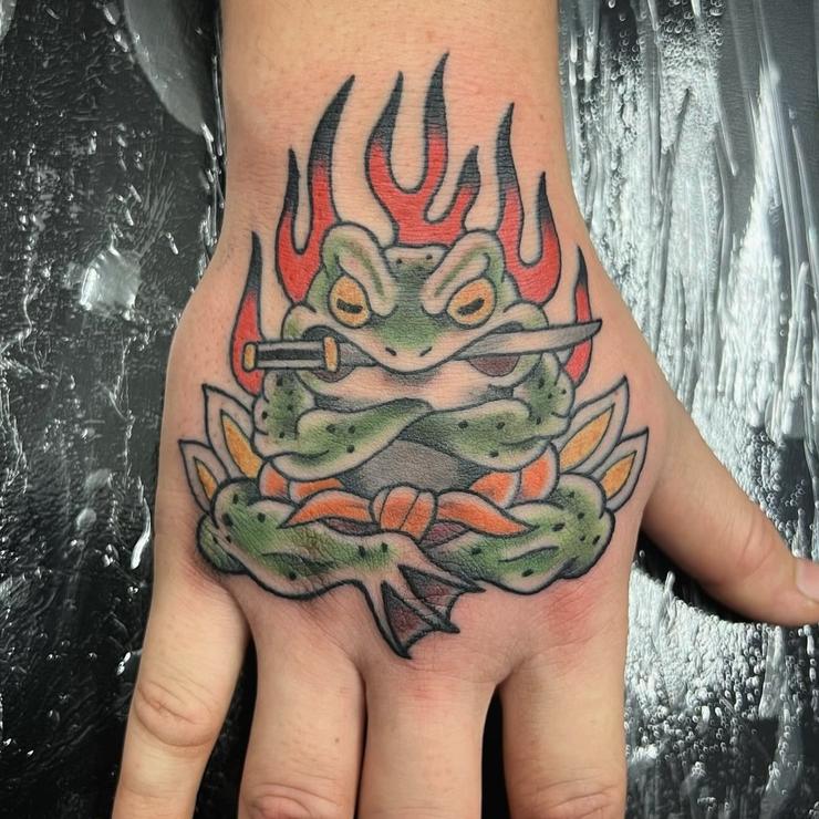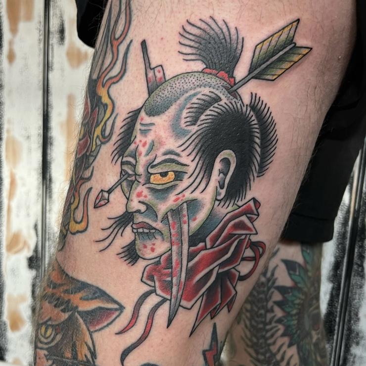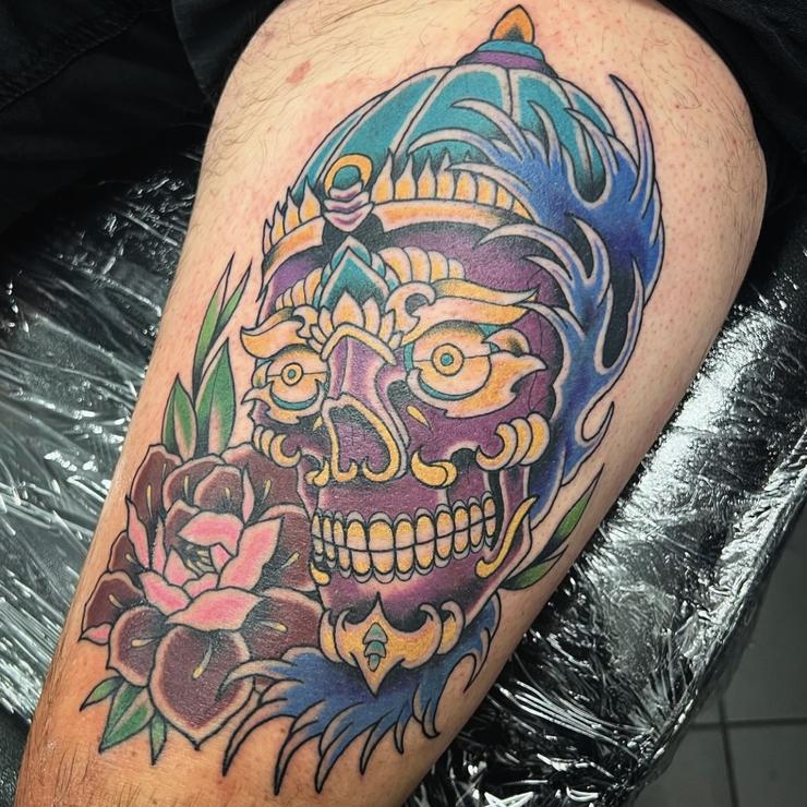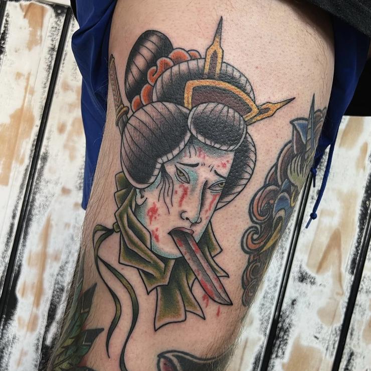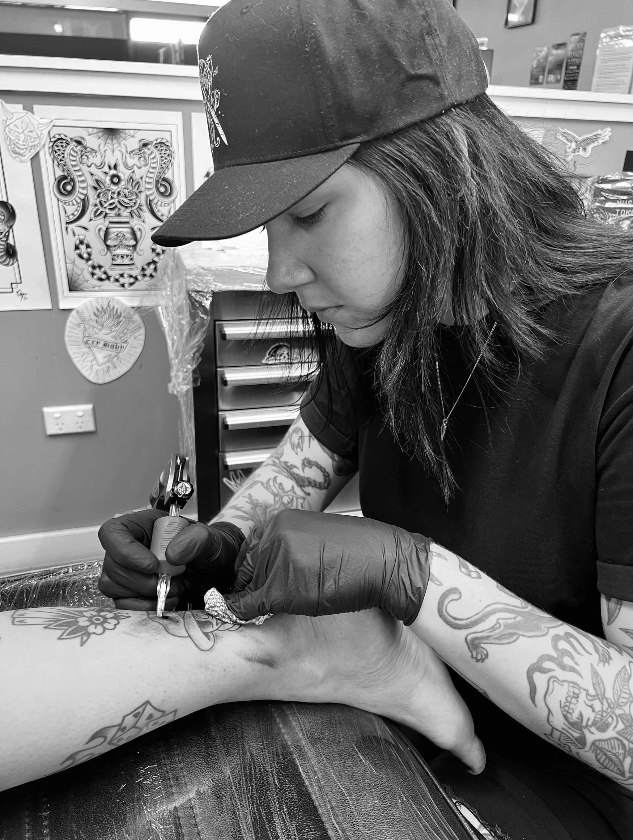 "Yo, I'm Gem. I have been tattooing since early 2016 and loved every minute of it. I really enjoy creating traditional tattoos but also have a soft spot for dotwork/mandala pieces. I've worked in a few shops over the years but never somewhere that feels quite as homey as Golden Monkey. This studio just has the best crew, best vibes and always makes you feel so welcome. I'm thankful for all the new clients I get to meet and of course my regulars that keep on coming back year after year. I bloody love you all! I cant wait to work with you on whatever piece we create together next. Come get stabbed! Peace"