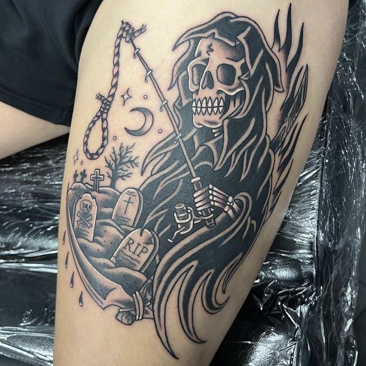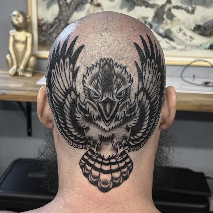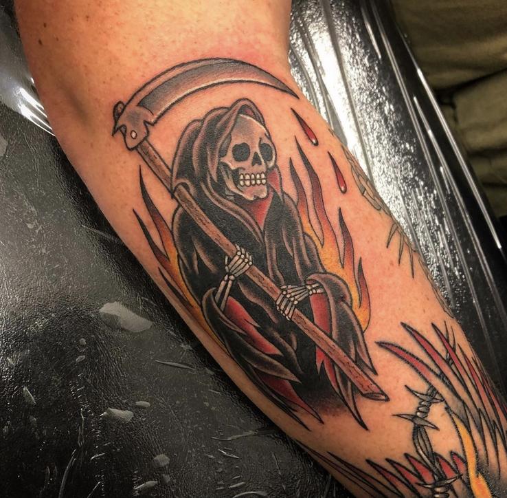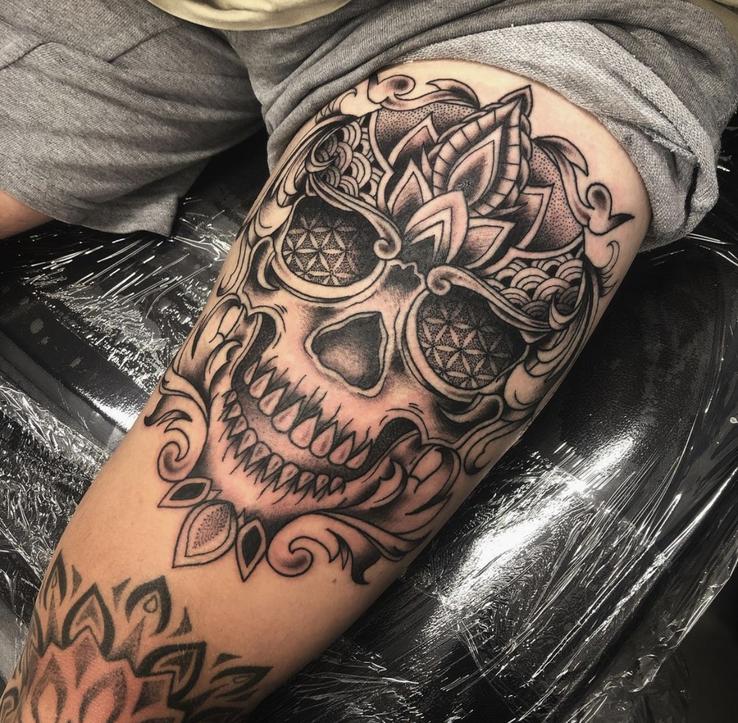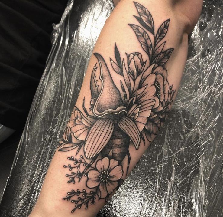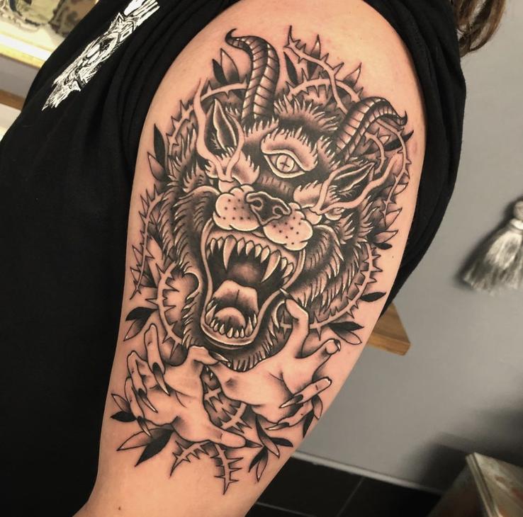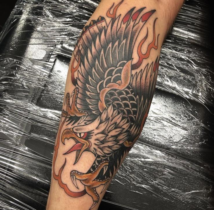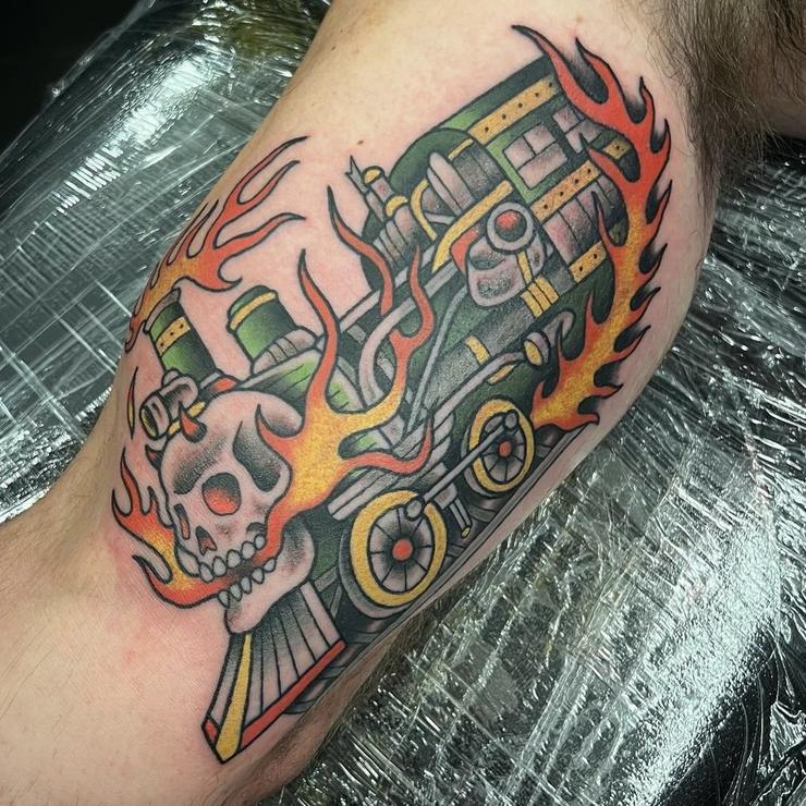 "Yo, I'm Gem. I have been tattooing since early 2016 and loved every minute of it. I really enjoy creating traditional tattoos but also have a soft spot for dotwork/mandala pieces. I've worked in a few shops over the years but never somewhere that feels quite as homey as Golden Monkey. This studio just has the best crew, best vibes and always makes you feel so welcome. I'm thankful for all the new clients I get to meet and of course my regulars that keep on coming back year after year. I bloody love you all! I cant wait to work with you on whatever piece we create together next. Come get stabbed! Peace"