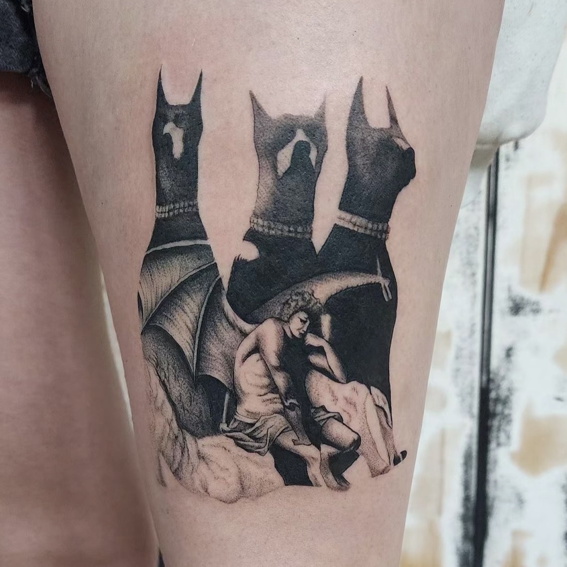 "Hi, I'm Sludge, aka Luke. I've been drawing since I could hold a pencil. I love creating black and grey illustrative realism through both fine dotwork and traditional methods. I am to become an all-rounder through my apprenticeship and hone my skills here with the guidance of the GMT team. Drop in for a chat and a sick tatt."